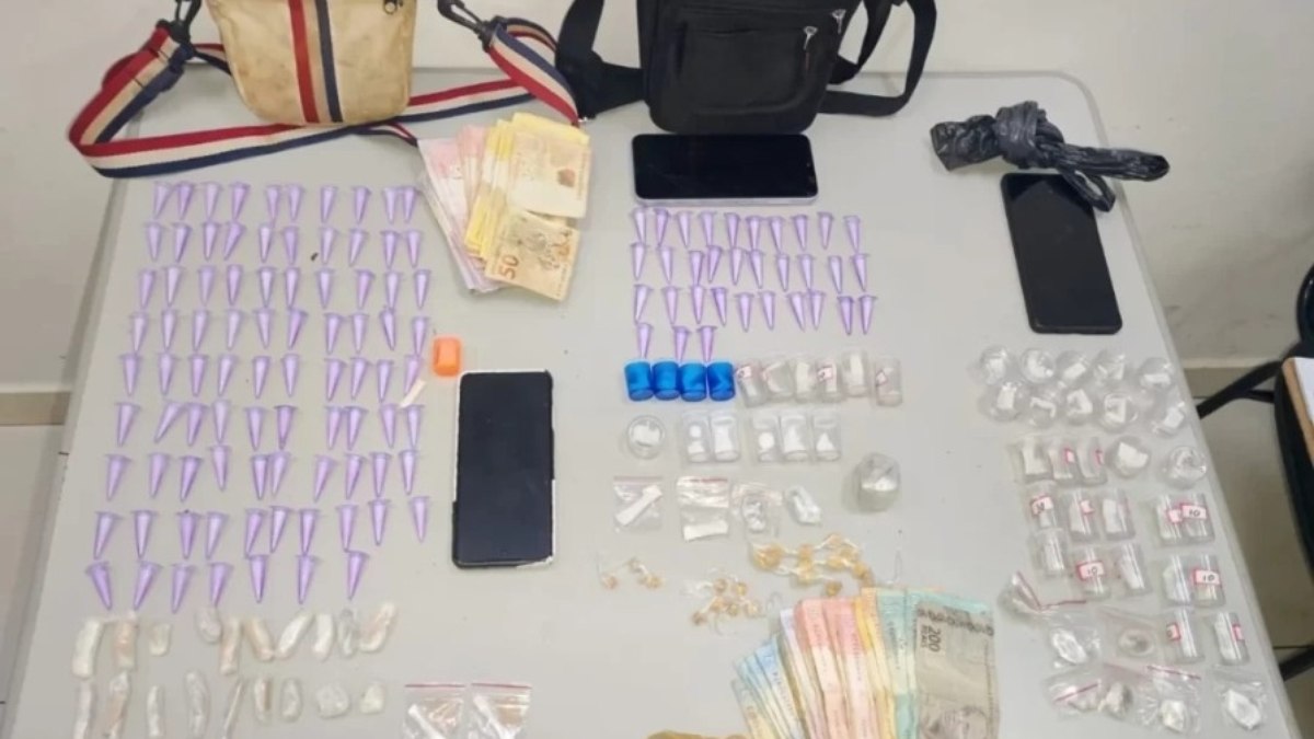 LEIA TAMBÉM Conheça o Projeto Mente & Vida, que apoia pessoas em sofrimento psíquico em Araraquara Araraquara recebe curso gratuito de defesa pessoal para mulheres; veja como participar Assalto em farmácia do Centro de Araraquara: criminosos levam R$ 25 mil em dinheiro e remédiosO jovem também carregava uma pochete preta com 33 pinos de cocaína, 13 porções de haxixe, 3 de maconha, 22 pedras de crack, 5 potes de skama (derivado da cocaína), um celular Samsung e R$ 753 em espécie. Já com o adolescente, os policiais militares apreenderam 10 pinos de cocaína, 15 porções de maconha e 120 de haxixe.